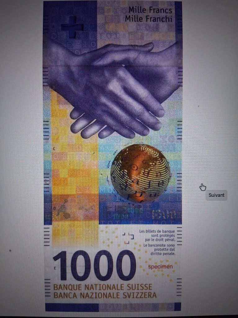 LE BILLET DE 1000 FRANCS SUISSE .